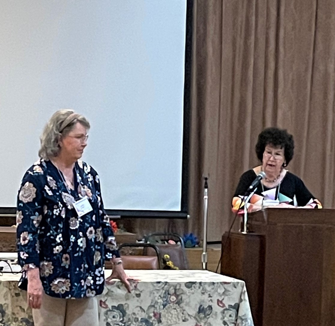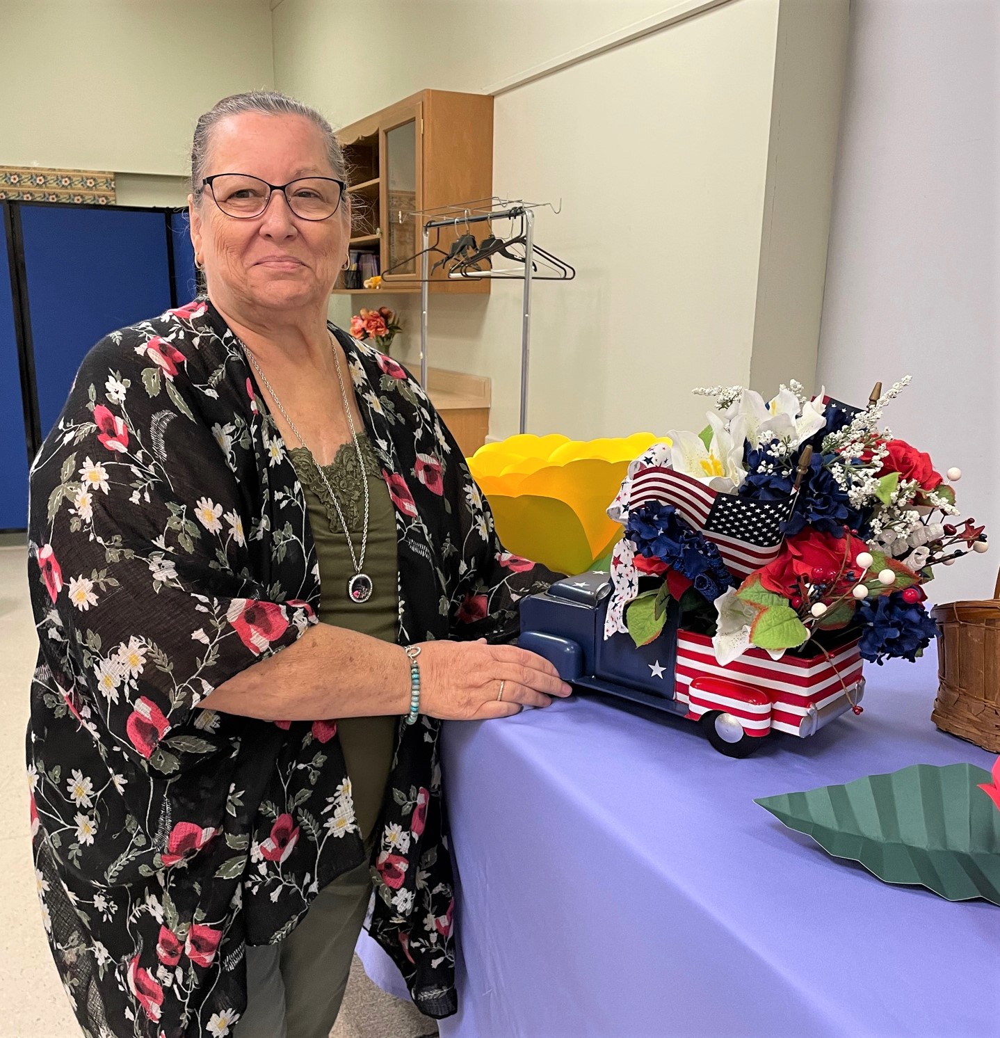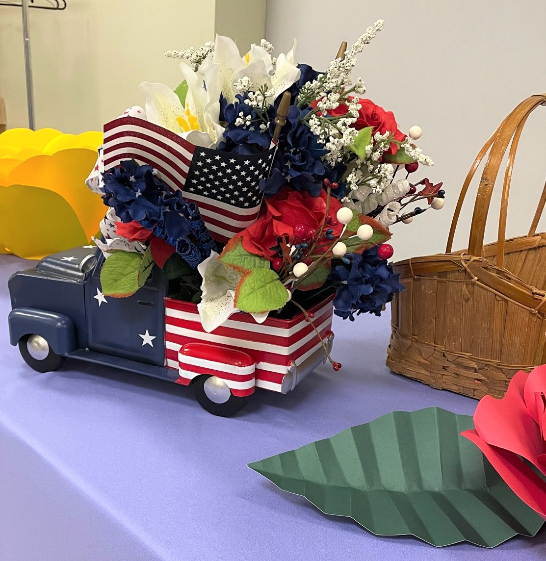 The last meeting of the year was on June 3rd. Officers were installed by Phyllis K in a very clever flower ceremony. The beautiful truck door prize was made and donated by Vicki H. Its patriotic design is just beautiful and so well put together.