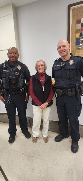 Our October and November meetings were well attended, and we had good programs. We have pictures from our November meeting. John Roberts, Deputy Director of Community Needs and Services—and grandson of Liz Gillman–was the speaker from the Topeka Rescue Mission.Two Topeka Police Officers from the Community Outreach Division shared tips on staying safe in your home and community.